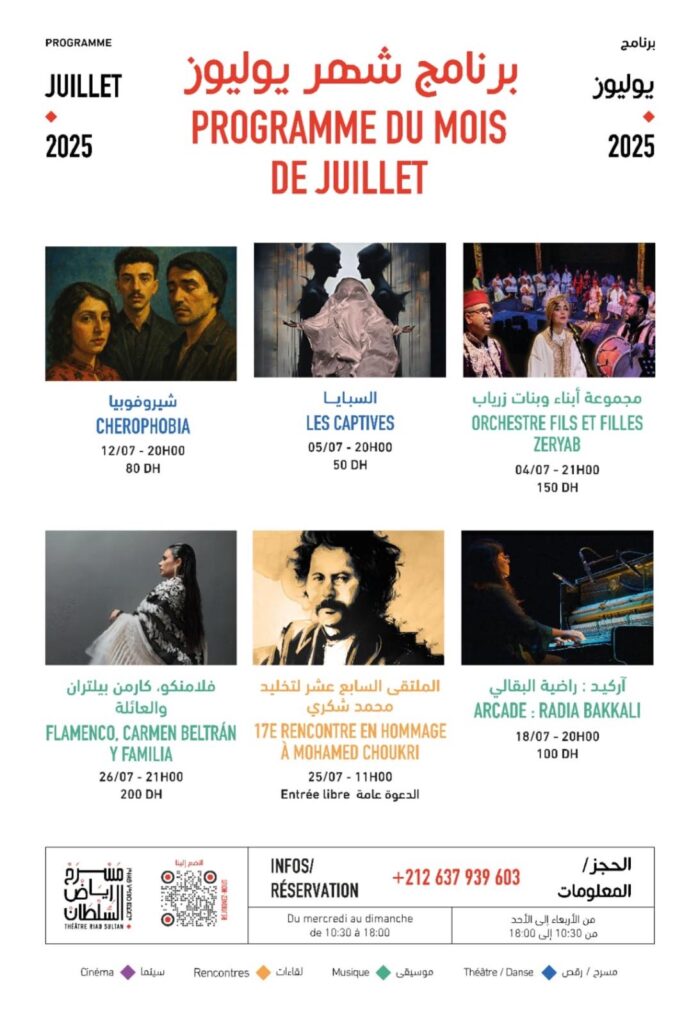 مدار 24 | طنجة، المغرب | تحت سماء الصيف الساطعة، يستعد مسرح رياض السلطان في طنجة لفتح أبوابه لاستقبال سلسلة من الأمسيات الفنية التي تعد بمزج فريد من الجمال، العاطفة، والإبداع. على مدار شهر يوليو 2025، ستنبض خشبة المسرح في طنجة ببرنامج انتقائي يجمع بين أصالة التراث وروح الحداثة، ليقدم رحلة حسية بين الإرث والتعبير المعاصر، حيث تعد كل أمسية بجرعة من الهروب والإبهار.