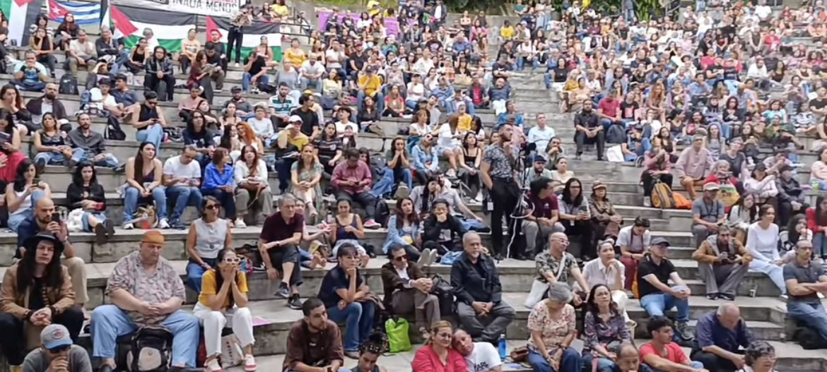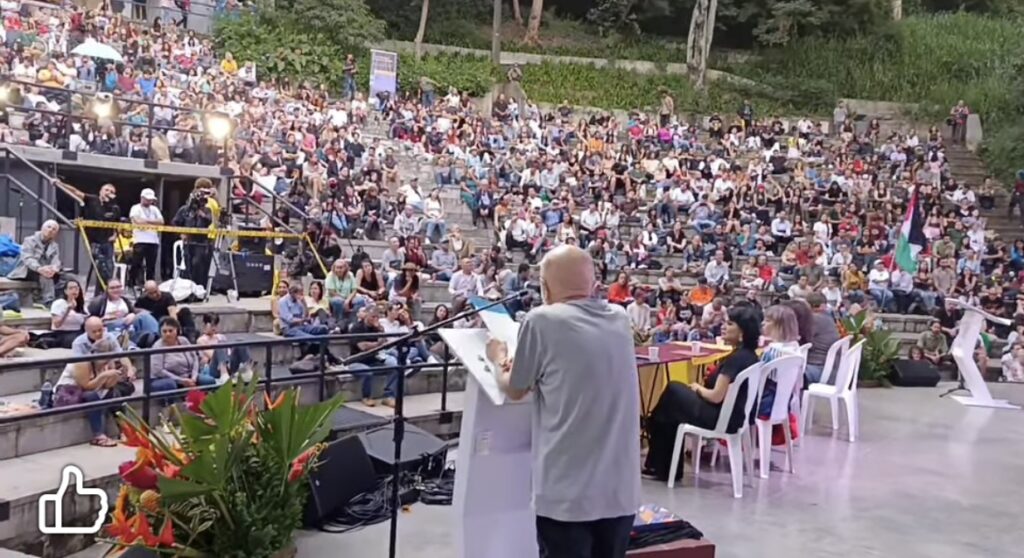 وفي هذه الأثناء في ميديلين، كولومبيا، يُعقد المهرجان الدولي للشعر، في نسخته الخامسة والثلاثين… في عناق واسع من الشرق إلى الغرب، من الجنوب إلى الشمال من التلال الحامية لوادي أبورا، مثل بيكاتشو وأعشاش النسور فيه، وبان دي أزوكار ودروبه الحجرية القديمة… فولادور وسيوله الصاخبة… نوتيبارا كمذبح لولادات قبيلة النوتابي… وكل وادي أبورا هو صدى للأشعار، التي تنزل من الظلال الزرقاء للعمالقة الذين شكلوا الذرة والفاصوليا… مساحة مواتية لنشر الأصوات المجنحة للمقاومة الشعرية من غزة، في غناء الشاعر الفلسطيني الضيف مراد السوداني… الذي جاء ليقول لنا: