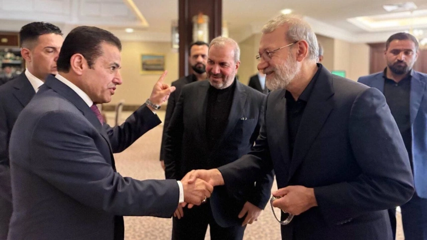 بعد أسبوع من تعيينه رئيسًا للمجلس الأعلى للأمن القومي الإيراني بدأ لاريجاني الأسبوع الماضي برحلة سياسية في أول مهمة رسمية خارجية له لبلدين يشكلان قوة إقليمية كبيرة بالنسبة لإيران وكفتي ميزان لصلابة النفوذ الإيراني في الشرق الأوسط هما العراق ولبنان، وقد حطت طائرته يوم الاثنين الفائت في بغداد، حيث كان في استقباله نظيره العراقي السيد قاسم الأعرجي مستشار الأمن القومي العراقي، وقد أبرم الجانبان اتفاقيات أمنية مشتركة بحضور رئيس الوزراء العراقي.