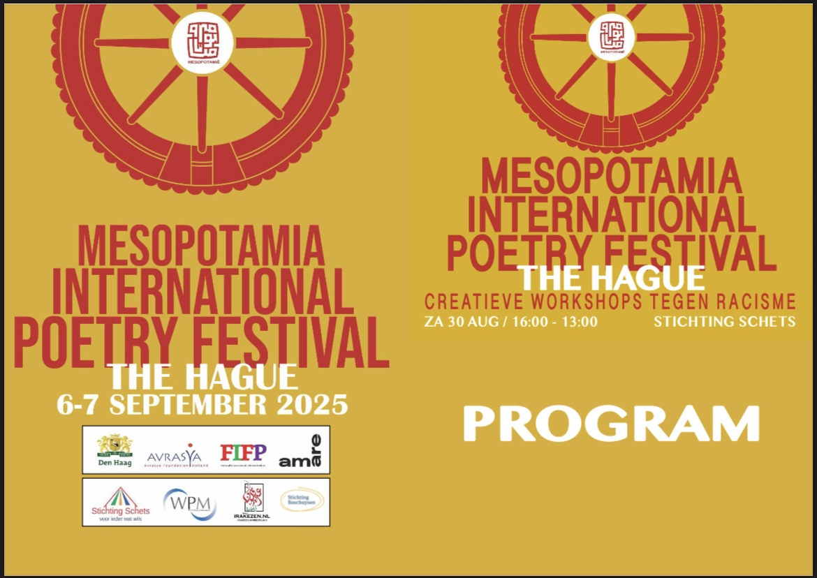 في قلب مدينة لاهاي بهولندا وفي مقر مؤسسة “Amare” بدأت صباح هذا اليوم 2 أيلول تباشير فعاليات مهرجان ميزوبوتاميا الشعري الدولي، (Mesopotamia International Poetry Festival)، والذي من المقرر أن ينطلق ابتداء من أيام 6 و7 أيلول/سبتمبر 2025م. وبمشاركة واسعة لشعراء من مختلف دول العالم، من إسبانيا وأمريكا اللاتينية وبحضور متميز للشعر العراقي، في تظاهرة شعرية لتحدي التمييز العنصري.