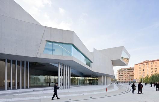 في لمحة تكشف عن الأهمية الكامنة، يختار الموقع الإلكتروني الخاص بمكتب زها حديد للهندسة المعمارية مخطط متحف ماكسي (MAXXI Museum)، متحف الفنون للقرن الحادي والعشرين في روما، ليكون الواجهة التخطيطية التي ترسو عليها أقسامه. هذه الإشارة المبطنة تؤكد مكانة ماكسي كأحد الأعمال المحورية ضمن إرث حديد، وهو المشروع الذي لم يكن مجرد إضافة إلى المشهد الروماني، بل إعادة تعريف له.