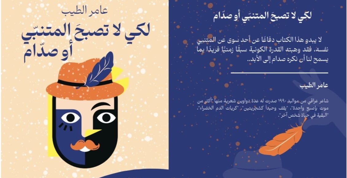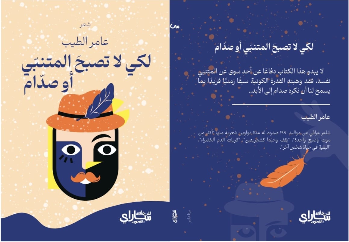 صدر كتاب شعري جديد للشاعر العراقي عامر الطيب بعنوان “لكي لا تصبح المتنبي أو صدام” ضمن مؤسسة “ساراي” الثقافية وهو الكتاب الذي سيشارك في معرض القاهرة الدولي للكتاب في دورة هذا العام.