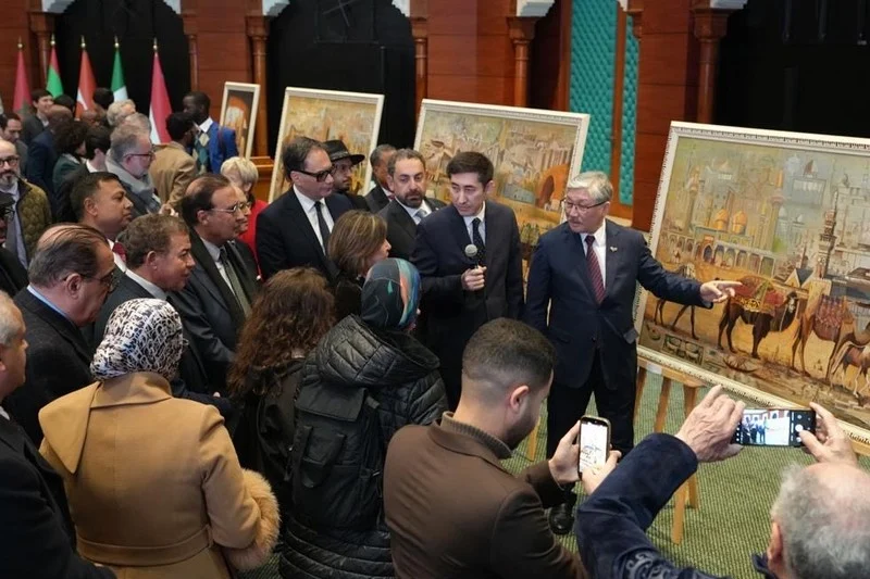 وأضاف تقديم المعرض أن الفنان الكازاخي موسابير “بما يمتلكه من حسّ إبداعي يروي بريشته محطات من حياة الفارابي، مسهما في تخليد إرثه وإيصال رسالته إلى جمهور واسع”، وفق كلمة “الإيسيسكو”.