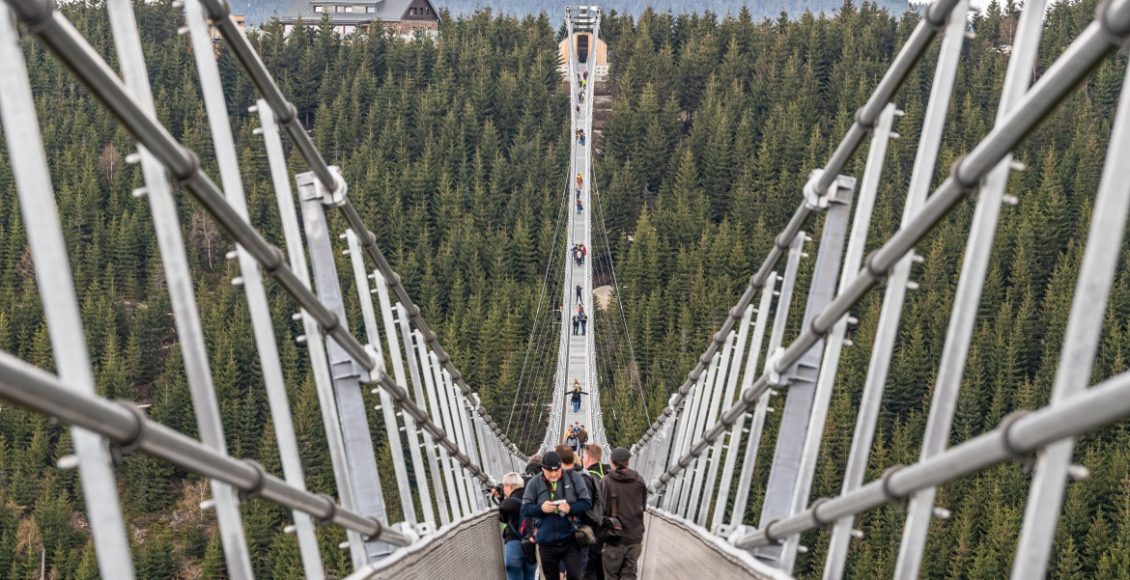 أفتتح هذا الجسر في جمهورية التشيك رسميا في ماي 2022 ويعتبرأطول جسر مشاة معلق في العالم يمتد بطول 721 مترا، وعرض 1.2 متر، ويقع على ارتفاع 95 مترا فوق سطح البحر. ويربط الجسر الذي يطلق عليه “جسر السماء” بين قمم جبال جينسكي في منتجع “دوليين” السياحي بمنطقة بوهيميا التشيكية، ويتفوق الجسر الجديد على جسر مشاة أروكا في البرتغال الذي يبلغ طوله 516 مترا الذي كان يحمل لقب أطول جسر في العالم وتم افتتاحه في 29 أبريل/نيسان عام 2021.