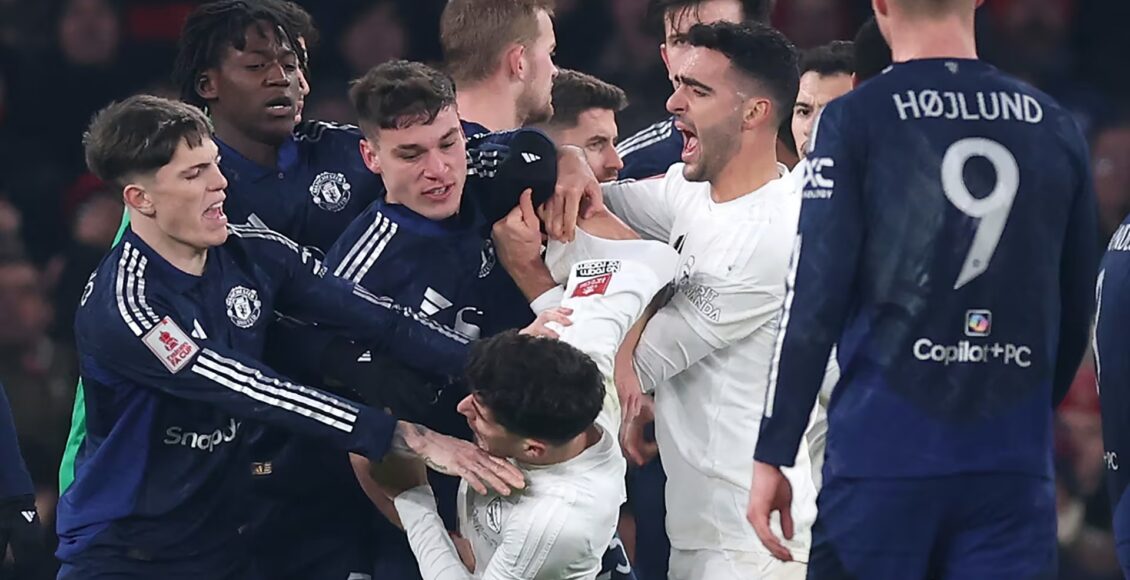 اشتعلت الأجواء بالعنف في قمة كأس الاتحاد الإنجليزي بين مانشستر يونايتد وأرسنال، اذ تحولت المباراة إلى ساحة حرب في الدقيقة 69 بعد احتساب ركلة جزاء مثيرة للجدل. اندلعت مشاجرة عنيفة بين لاعبي الفريقين، تبادل خلالها اللاعبون اللكمات والضربات الرأسية، مما اضطر الحكم لتوجيه إنذارات متعددة لتهدئة الأوضاع.”
