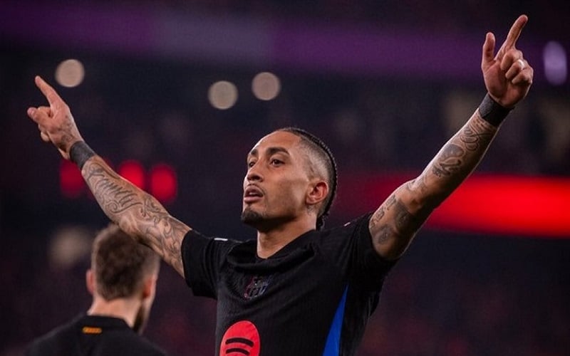 واستغل رافينيا الخطأ، وأطلق تسديدة منخفضة ارتطمت بمدافع قبل أن تسكن الشباك مباشرة باتجاه القائم الأيسر للمرمى.